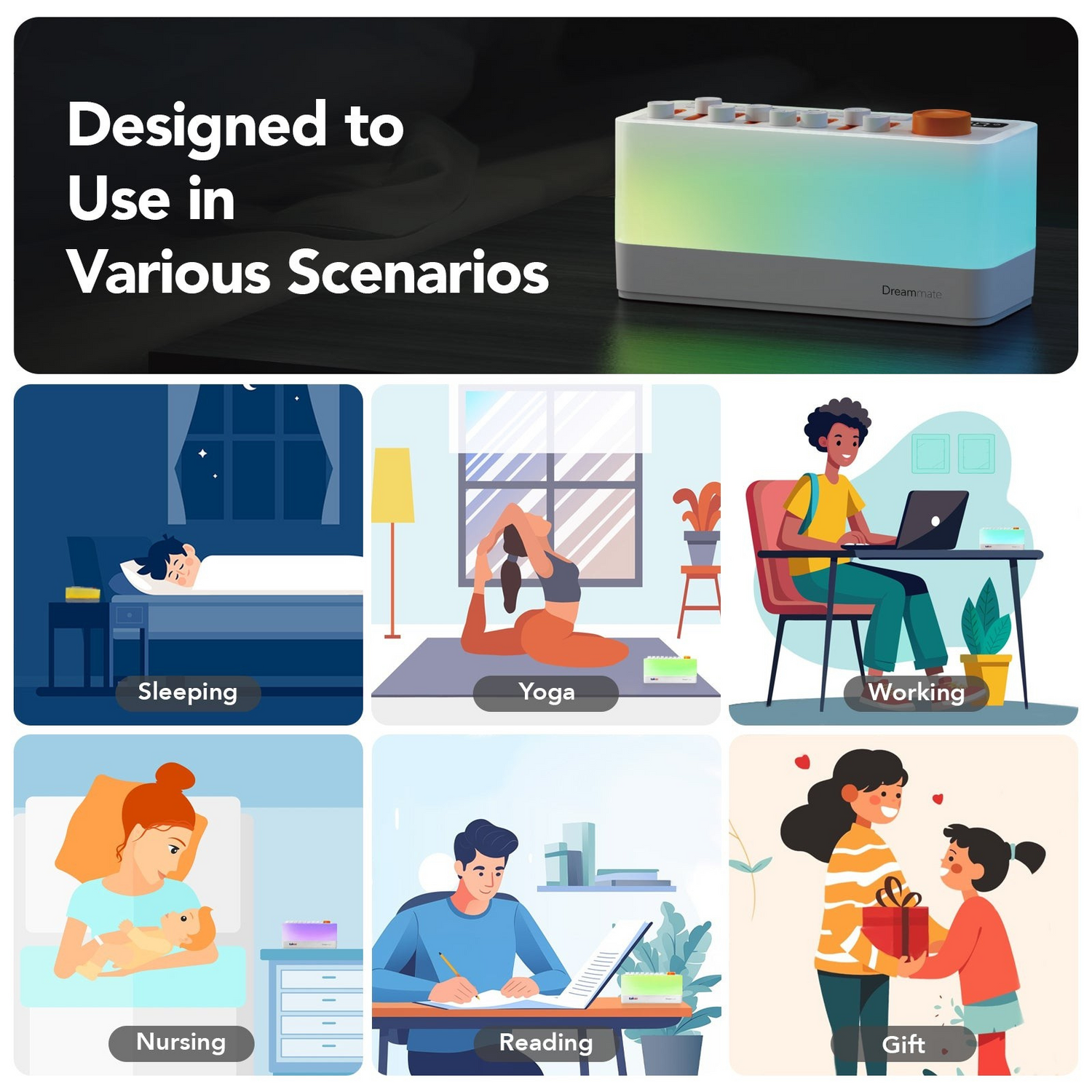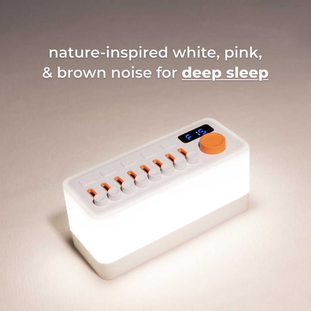 Unlike basic white noise machines, DreamPod One features 8 mixable sounds, adjustable lighting, Bluetooth streaming, and a smart timer—all in one sleek and portable device.